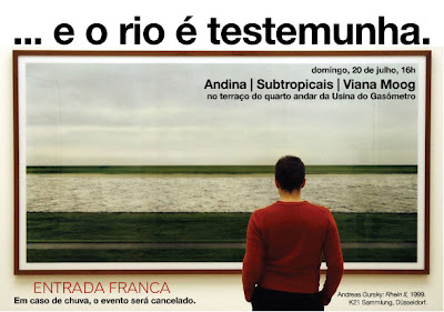 "Enfim, eu sou uma espantada com as coincidências, e costumo chamar isso de encontro. Nada a ver com o seu post, mas achei legal comentar um 'espanto' recente. Fui no sábado passado no projeto Popular Ruído e Literatura (no Ocidente) e, de repente, vejo no palco alguém fazendo algo lindo, misturando música e poesia e ruído... Anunciaram que era 'um tal de' Douglas Dickel, e eu reconheci esse nome, mas não sabia de onde. Logo depois, um amigo que estava comigo disse 'ah, esse cara lançou um livro de poesias na Feira do Livro, junto com um cara chamado Muriel-alguma-coisa' (espanto). Daí me caíram as fichas que aquele que estava no palco e fazia o ruído era o 'comentador' dos posts do insidethetimemachine e era por isso que reconhecia o nome. E que então o tal Muriel-alguma-coisa só poderia ser o mesmo Muriel dono do blog. Estou certa? Não sei o motivo, mas isso me espantou mesmo. Uma circularidade." (Maya Redin)